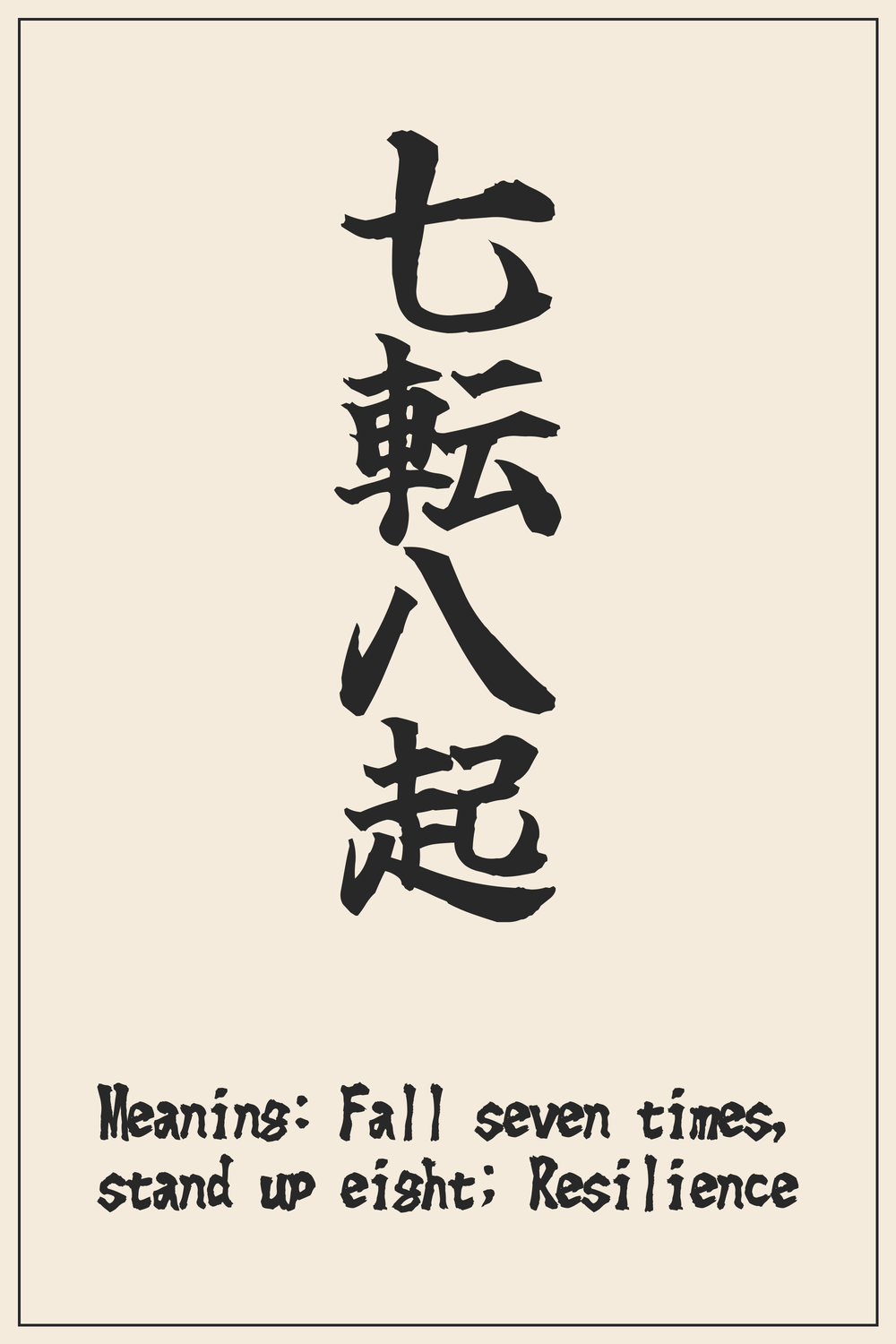 Each character within 七転八起 contributes to its powerful message of resilience and unwavering spirit.