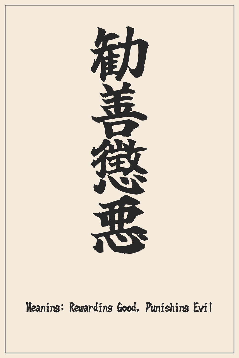 The phrase 勧善懲悪 (Kanzenchen’aku) originates from ancient Chinese philosophy, particularly gaining prominence in Confucian thought. It articulates a fundamental moral and social principle: the encouragement and reward of virtuous acts, and the condemnation and punishment of malevolent ones.