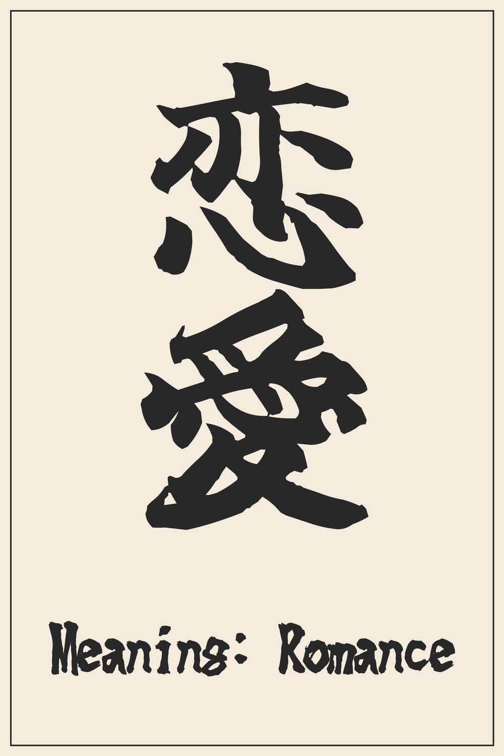 Embrace the beauty of love with this kanji, symbolizing the profound connection and passion that binds souls together. It captures the essence of romance, inspiring warmth and unity in relationships.