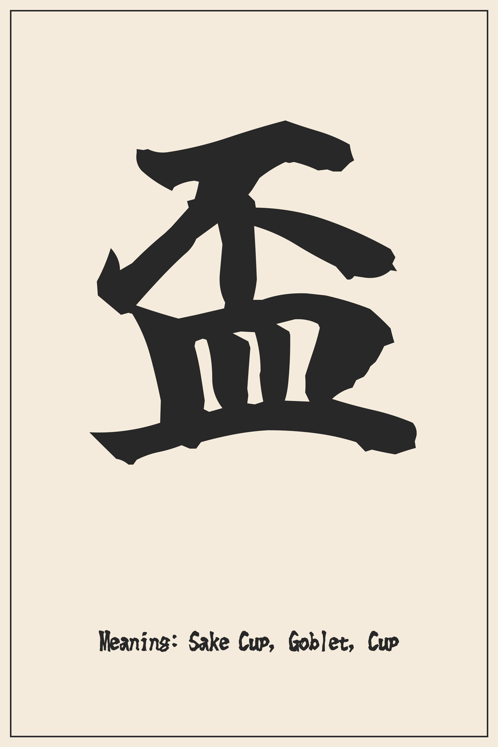 The Kanji 盃 is a complex character whose components visually contribute to its meaning as a sophisticated drinking vessel.