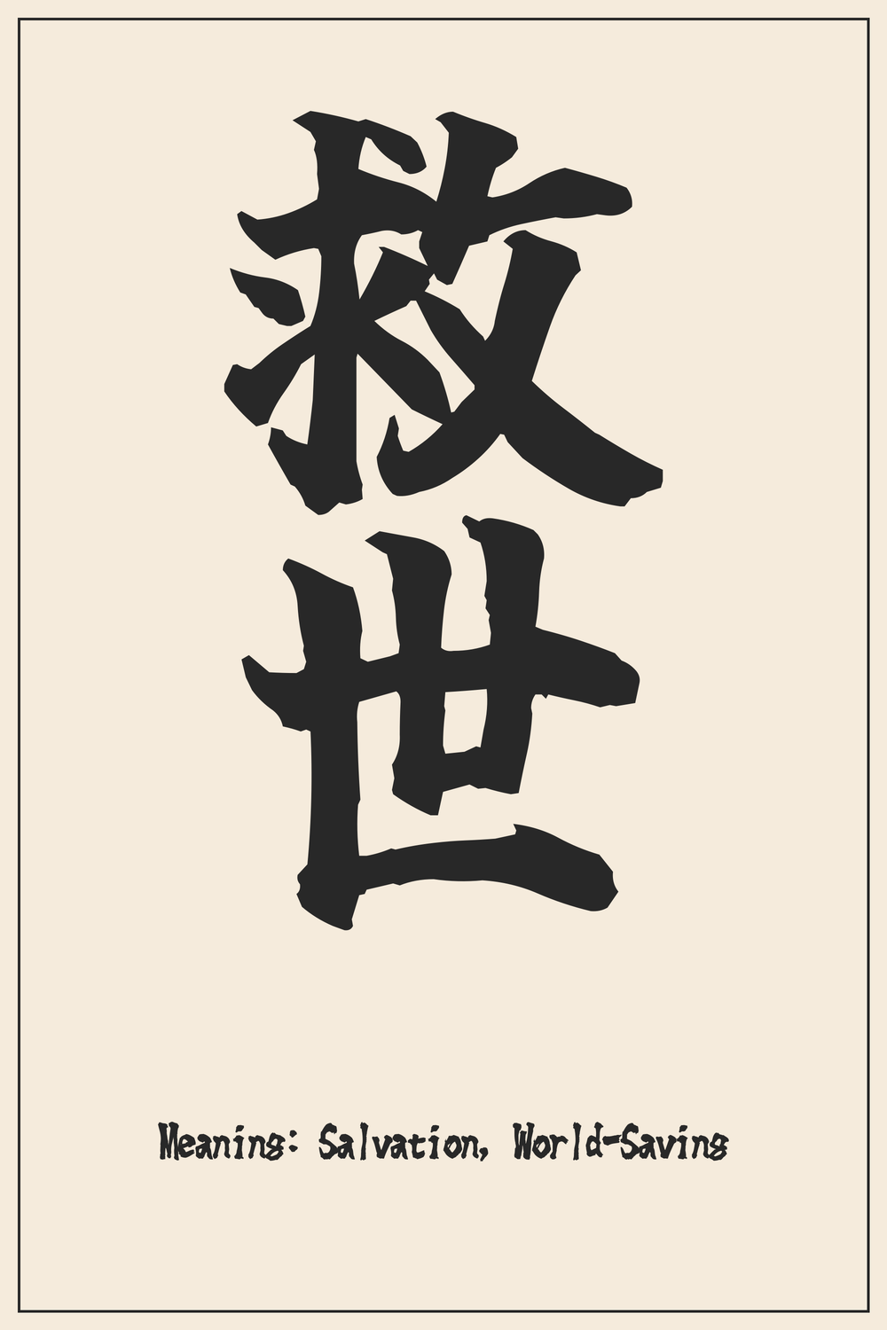 The Kanji "救世" resonates with a profound call to purpose, embodying the ultimate act of salvation and global benevolence. It represents a powerful aspiration to bring profound positive change to the world.