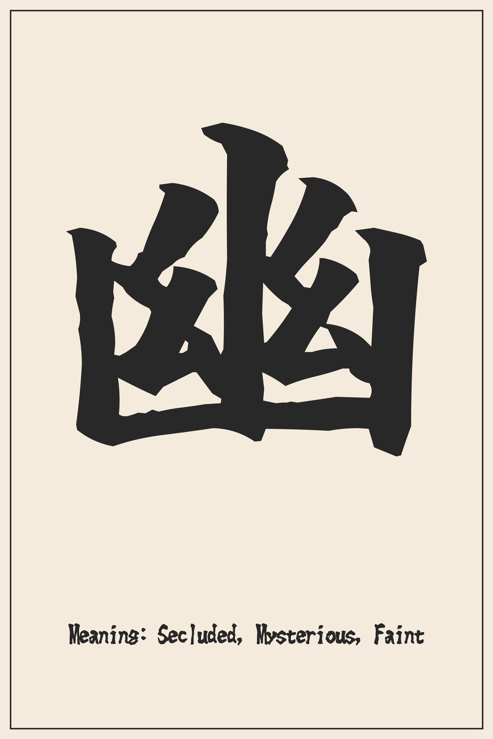 The Kanji 幽 encapsulates the profound beauty of the unseen and the enigmatic. It represents a subtle, deep connection to the spiritual and the mysterious.