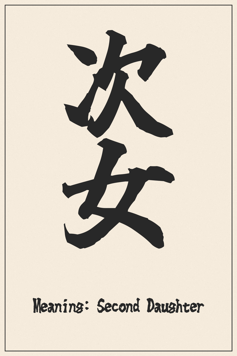 For those seeking to honor the deep bonds of family, the Kanji 次女 (Jijo) encapsulates the cherished role of a second daughter. It represents not just a position within a family, but a unique individual spirit.