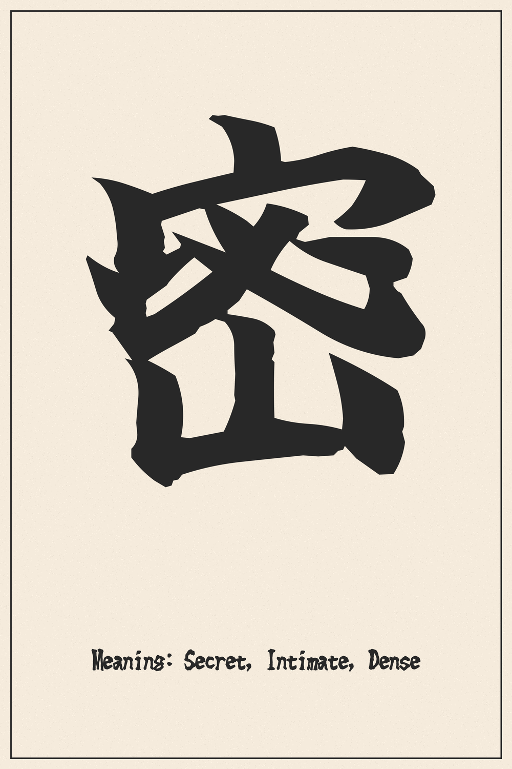 The Kanji 密 is an ideogram that combines several elements to convey its complex meanings.