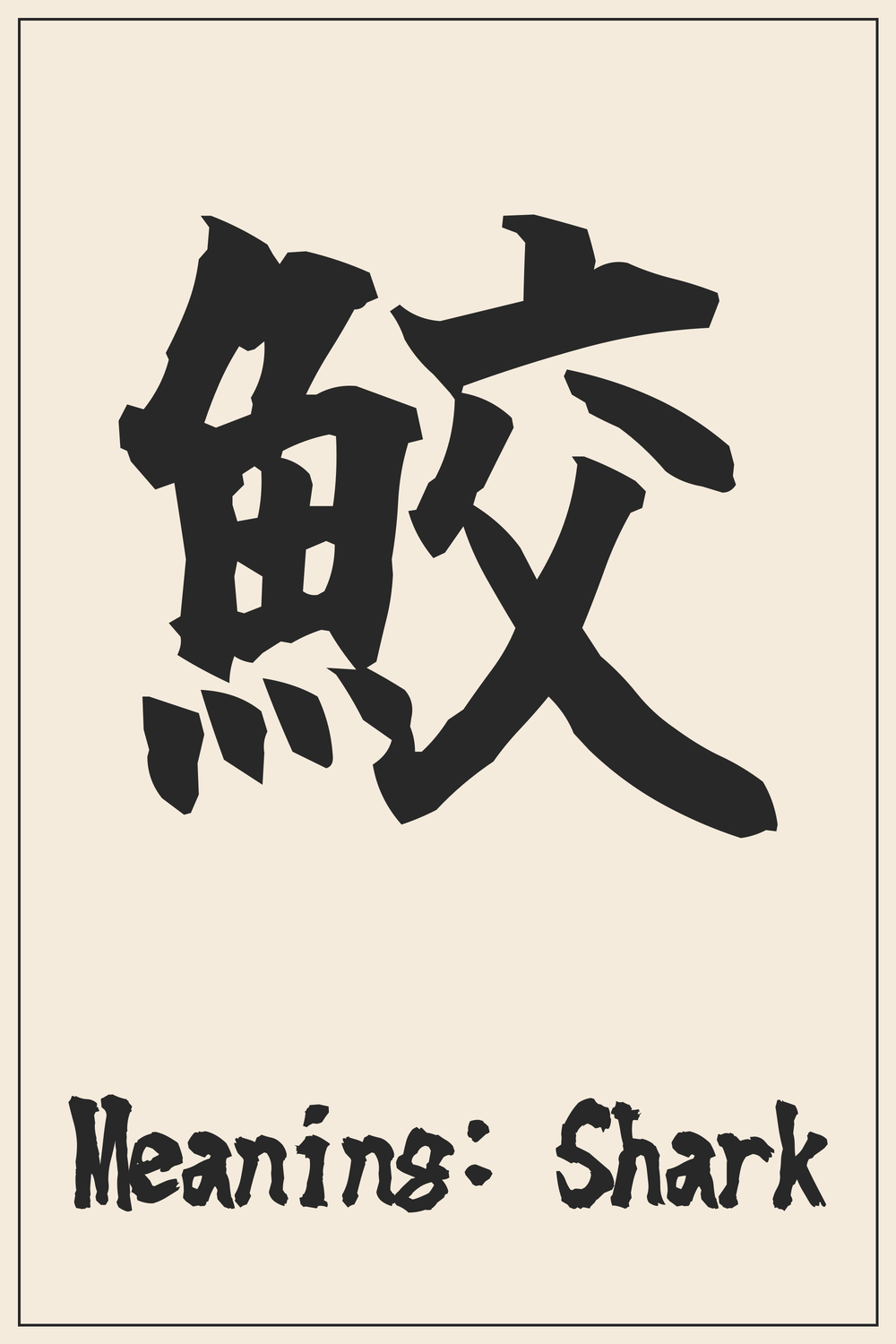 The Kanji 鮫 captures the essence of the shark – a creature synonymous with power, resilience, and an unwavering spirit of survival. It represents the formidable forces of nature and the instinctual drive to thrive.