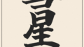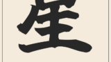 Meaning: This character means ‘star’ or ‘celestial body.’ It comprises the radical 日 (hi), meaning ‘sun’ or ‘day,’ often used for celestial elements, positioned over 生 (sei), meaning ‘life’ or ‘birth.’ Together, they convey the idea of something born or appearing in the sky, a luminous point of life in the cosmos.