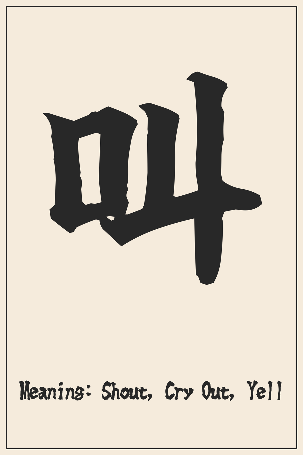 The Kanji 叫 encapsulates the raw power of the human voice, expressing profound emotions or urgent calls. It signifies a direct, unmediated outburst, a vocalization from the depths of one’s being.