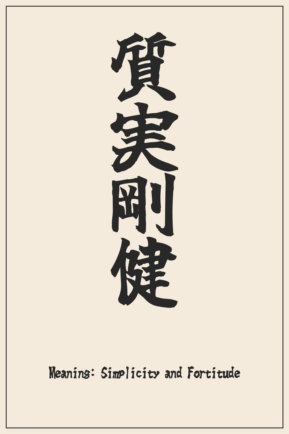 Embrace the essence of authenticity and resilience with this powerful kanji. It symbolizes a life grounded in simplicity, where true strength and unwavering spirit shine through. Perfect for those who value inner fortitude and the beauty of a straightforward path.