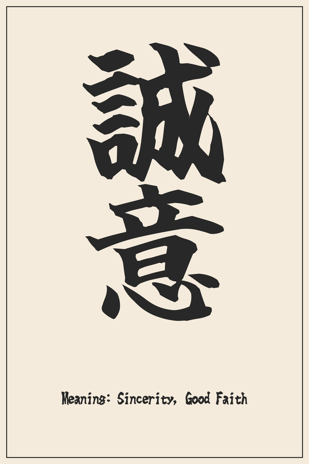 誠意 beautifully encapsulates the human desire for authenticity and trustworthy interactions. It stands as a timeless reminder to approach life and relationships with genuine purpose and an honest heart.