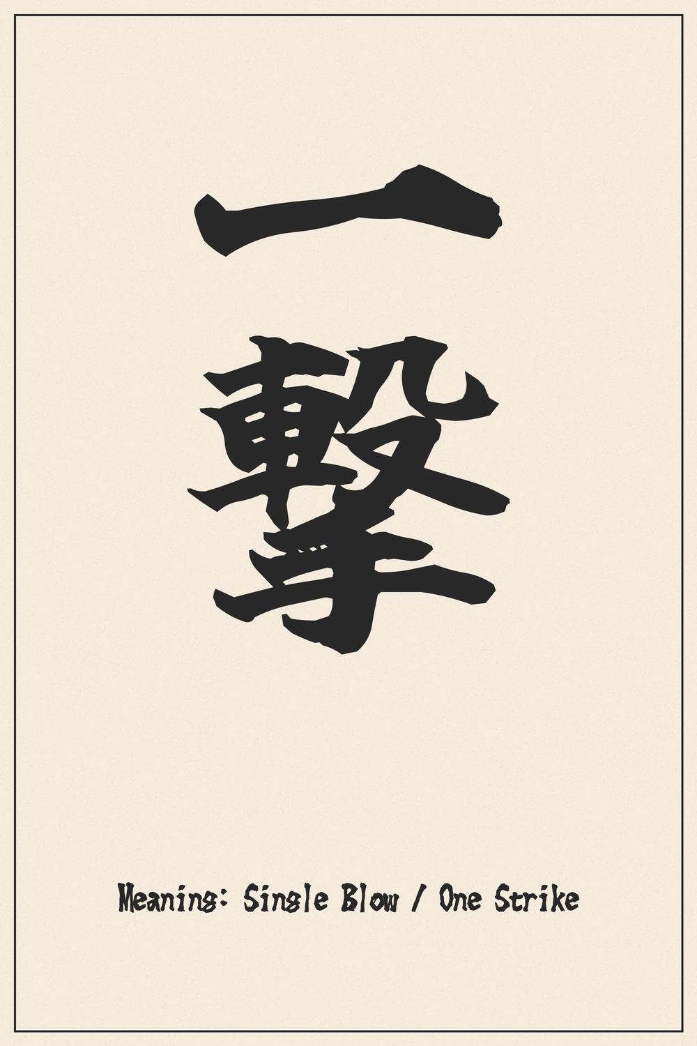 The Kanji compound 一撃 (Ichigeki) is a profound symbol of singular power, precision, and ultimate decisiveness. It encapsulates the philosophy of achieving maximum impact with minimal, yet perfectly executed, effort.