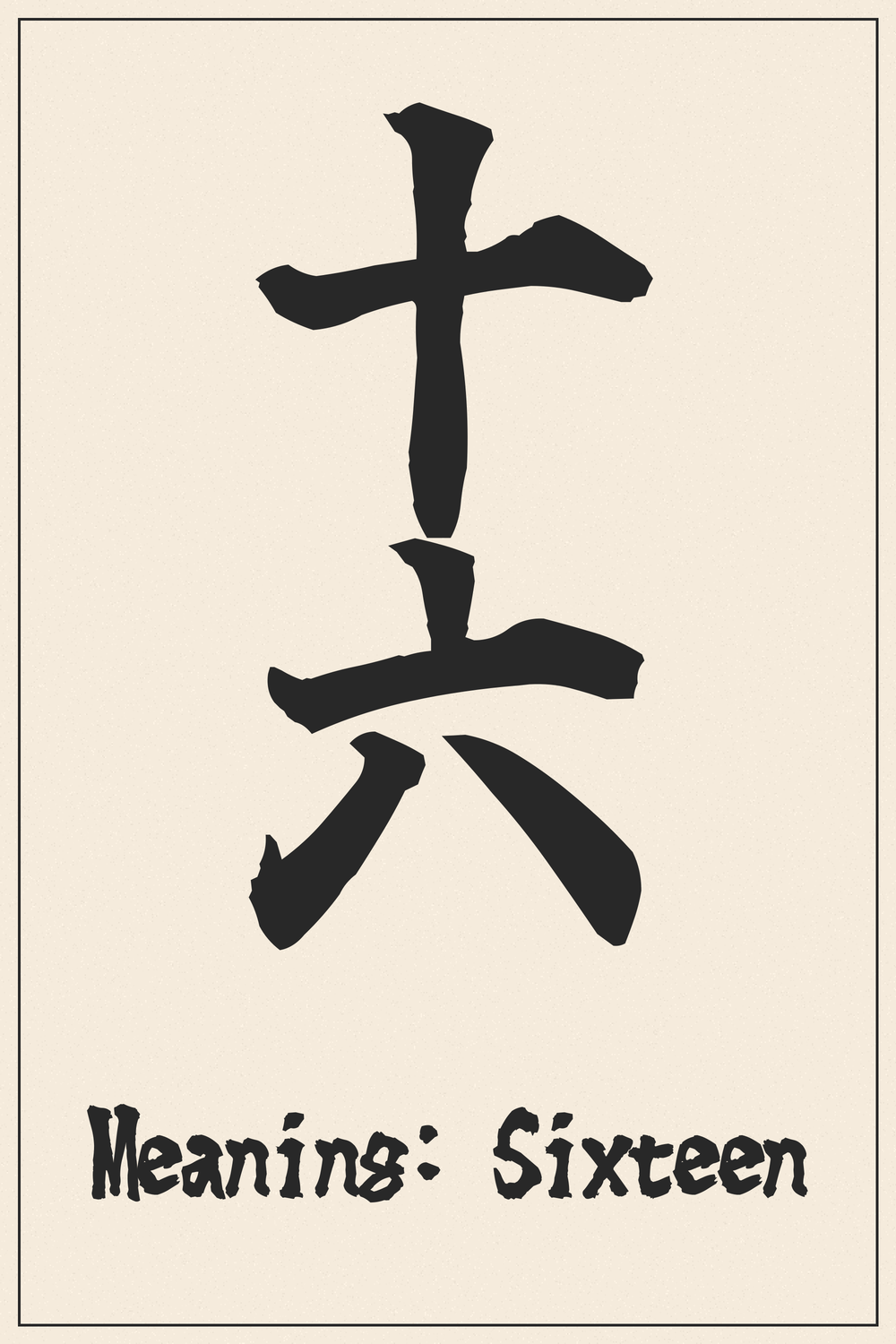 The Kanji compound 十六, representing the number sixteen, holds a straightforward yet deeply personal significance. It often symbolizes a specific age, a memorable year, or a count with special meaning in one’s life journey.