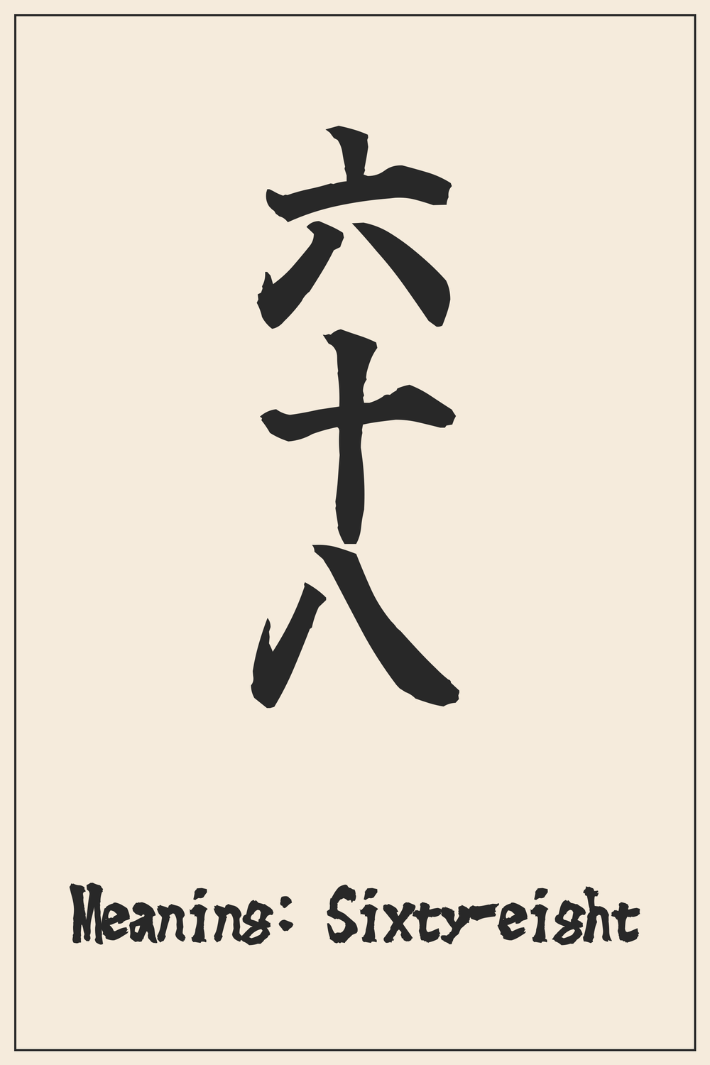 The number sixty-eight is formed by the combination of three individual Kanji, each with its own simple yet essential meaning.