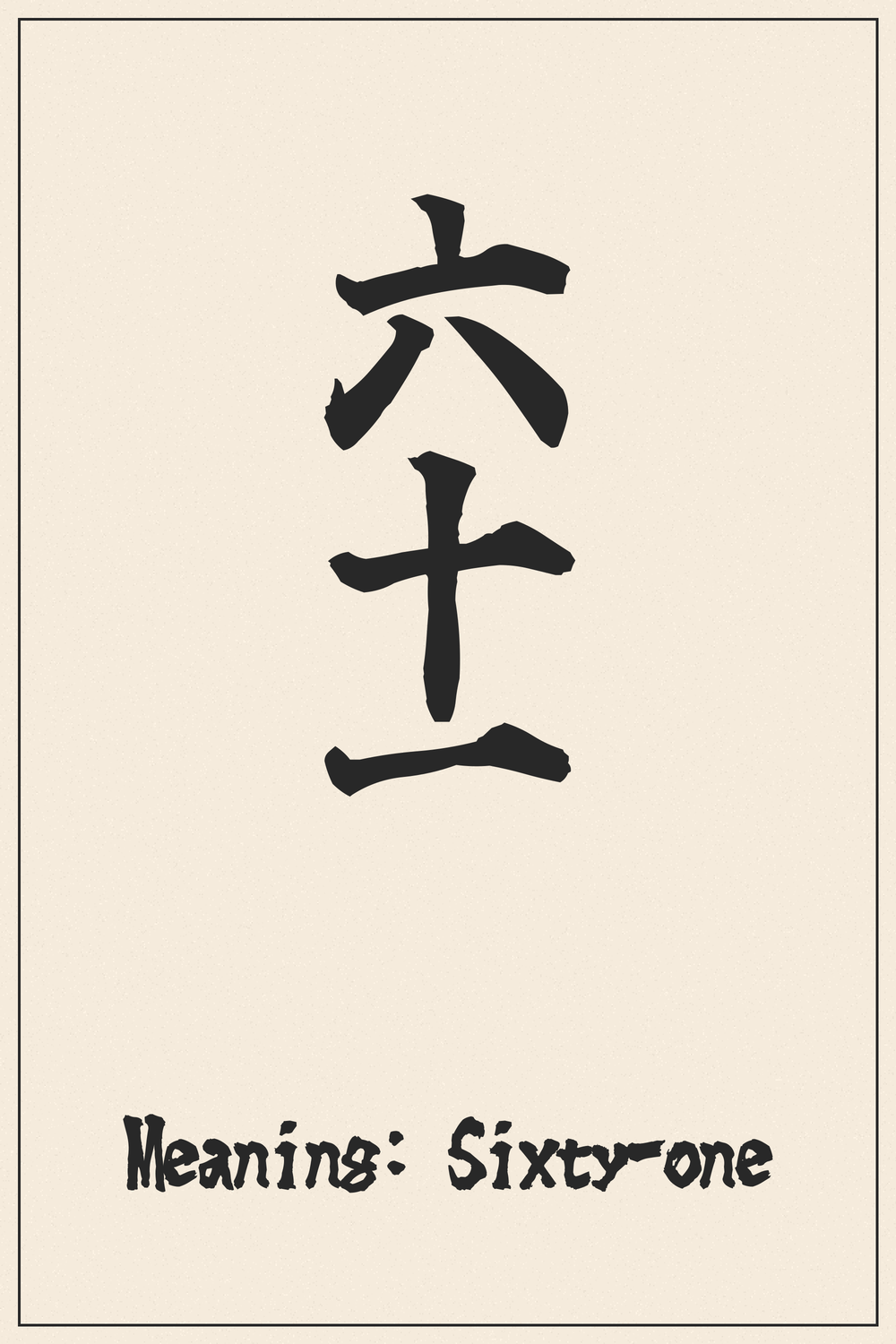 Numbers are fundamental to understanding the world, and ‘六十一’ (Rokujuichi) precisely denotes the quantity sixty-one. This combination of simple yet potent kanji offers clarity and directness.