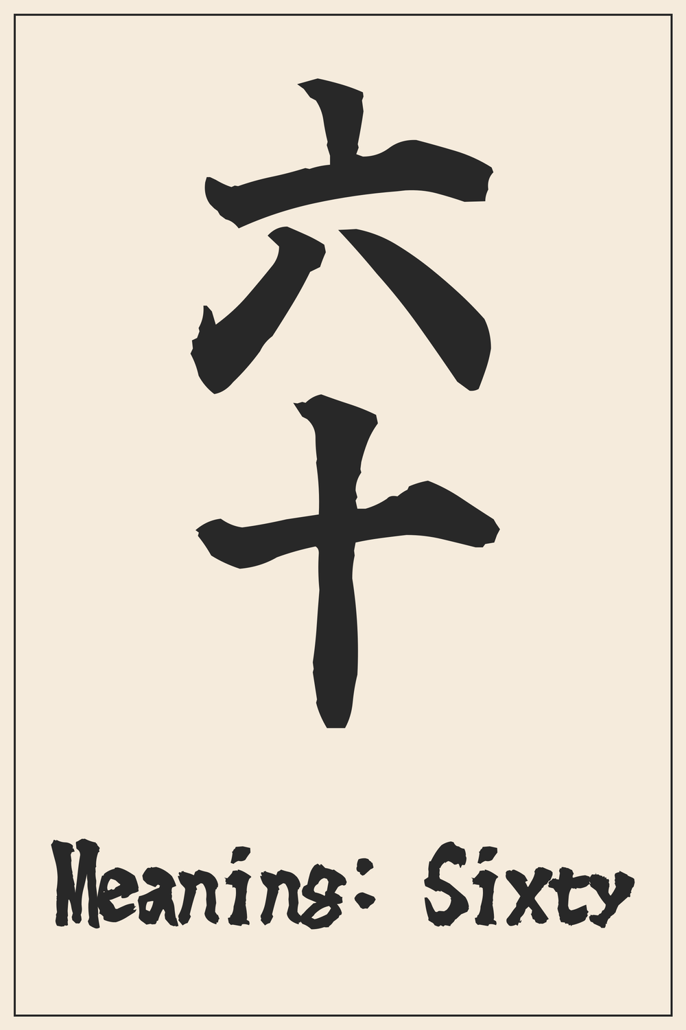 The Kanji for ‘Sixty’ (六十) holds more than just numerical value; it symbolizes a significant milestone and a complete cycle in many cultures, particularly in Japan. Embodying the culmination of a full life chapter, it represents wisdom, experience, and the dawn of a new phase.