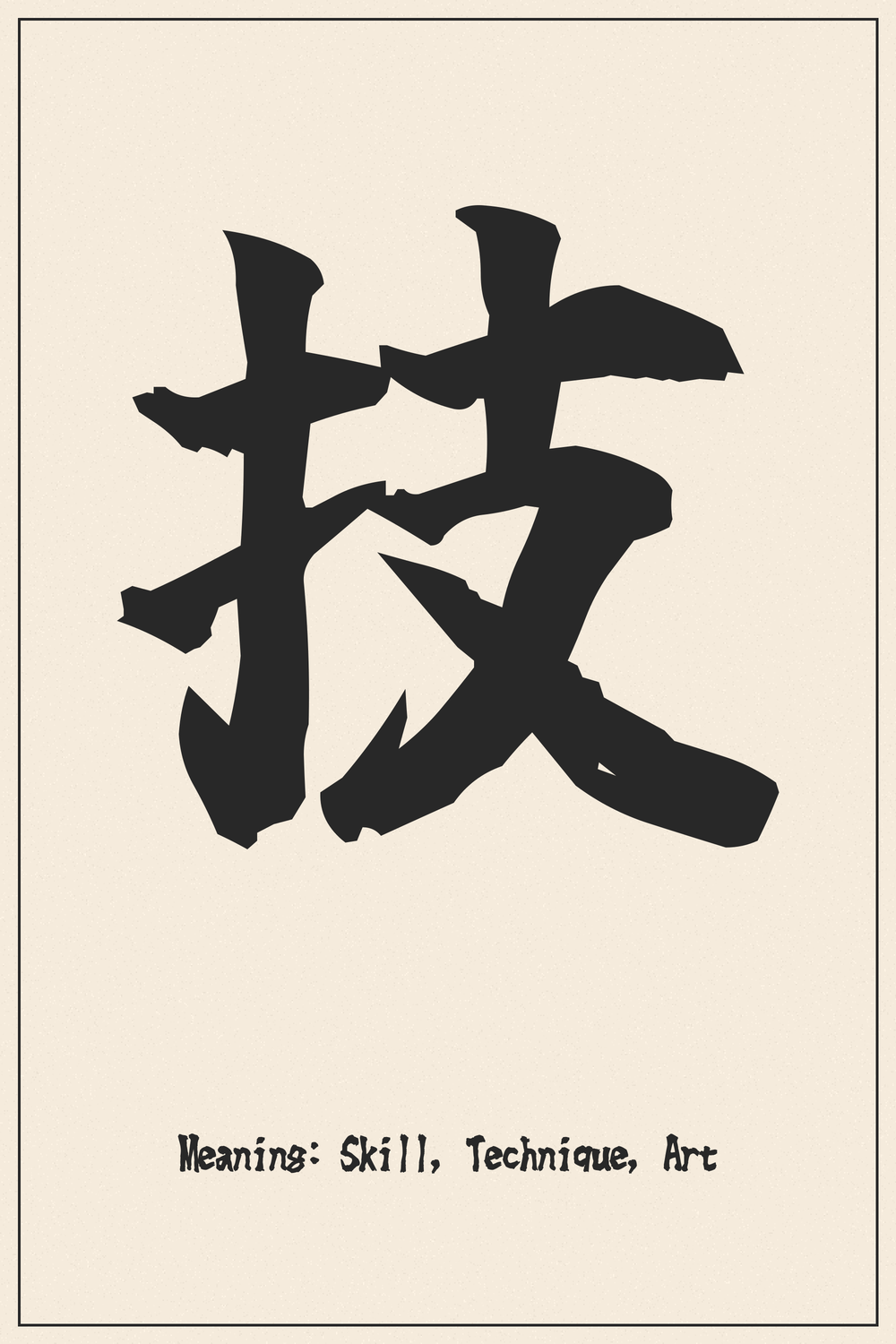 The Kanji ๆ powerfully symbolizes the pursuit of excellence and the mastery of any art, craft, or discipline. It represents not just raw ability, but the dedication, practice, and refined technique that distinguish true expertise.