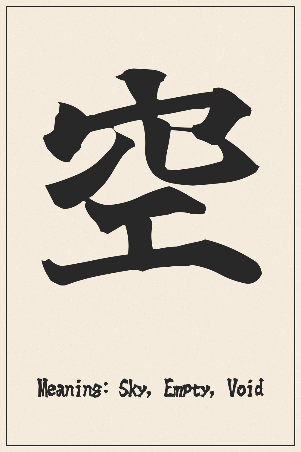 The Kanji 空 (Sora/Kuu) represents the vast expanse above us and the profound concept of emptiness. It embodies both boundless freedom and deep philosophical introspection.