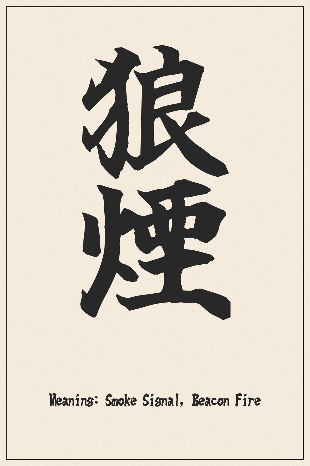 The Kanji 狼煙 (Noroshi) captures the dramatic essence of ancient communication, symbolizing urgent messages sent across vast landscapes.