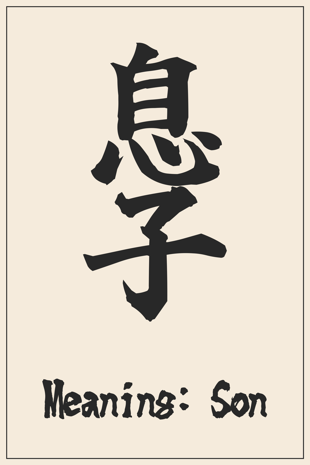 The Kanji 息子 (Musuko) beautifully encapsulates the profound bond and generational continuity associated with having a son. It represents love, responsibility, and the hopes parents place in the next generation, making it a deeply personal and meaningful symbol.