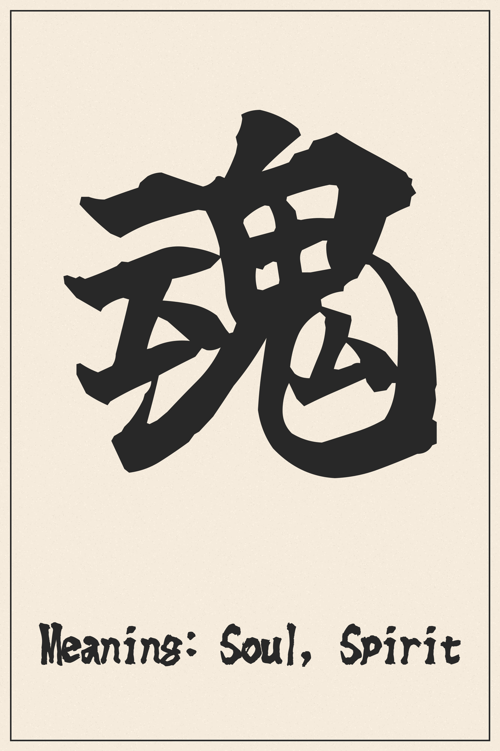 The Kanji ‘魂’ is a phono-semantic compound, combining elements that evoke the ethereal nature of the spirit.