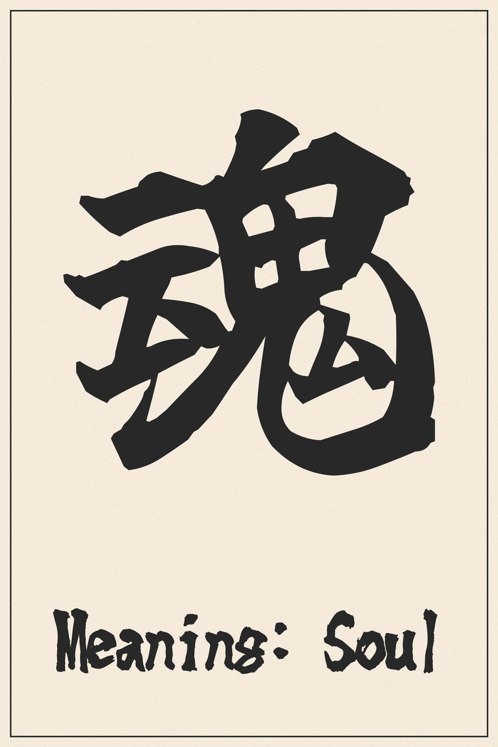 The kanji 魂 embodies the essence of one’s spirit, representing inner strength and vitality. It serves as a reminder of the beauty within and the connection to the world around us, celebrating the journey of life and the depth of human experience.