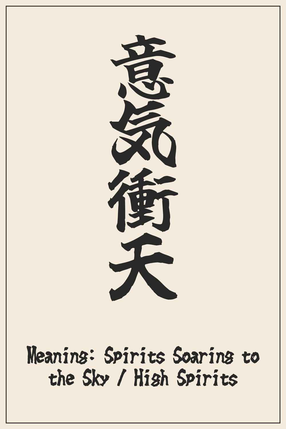 意気衝天 (Ikki Shouten) is a powerful Japanese idiom that evokes an image of boundless enthusiasm and aspirations reaching for the heavens. It represents an indomitable spirit, ready to overcome any challenge with fervent determination.