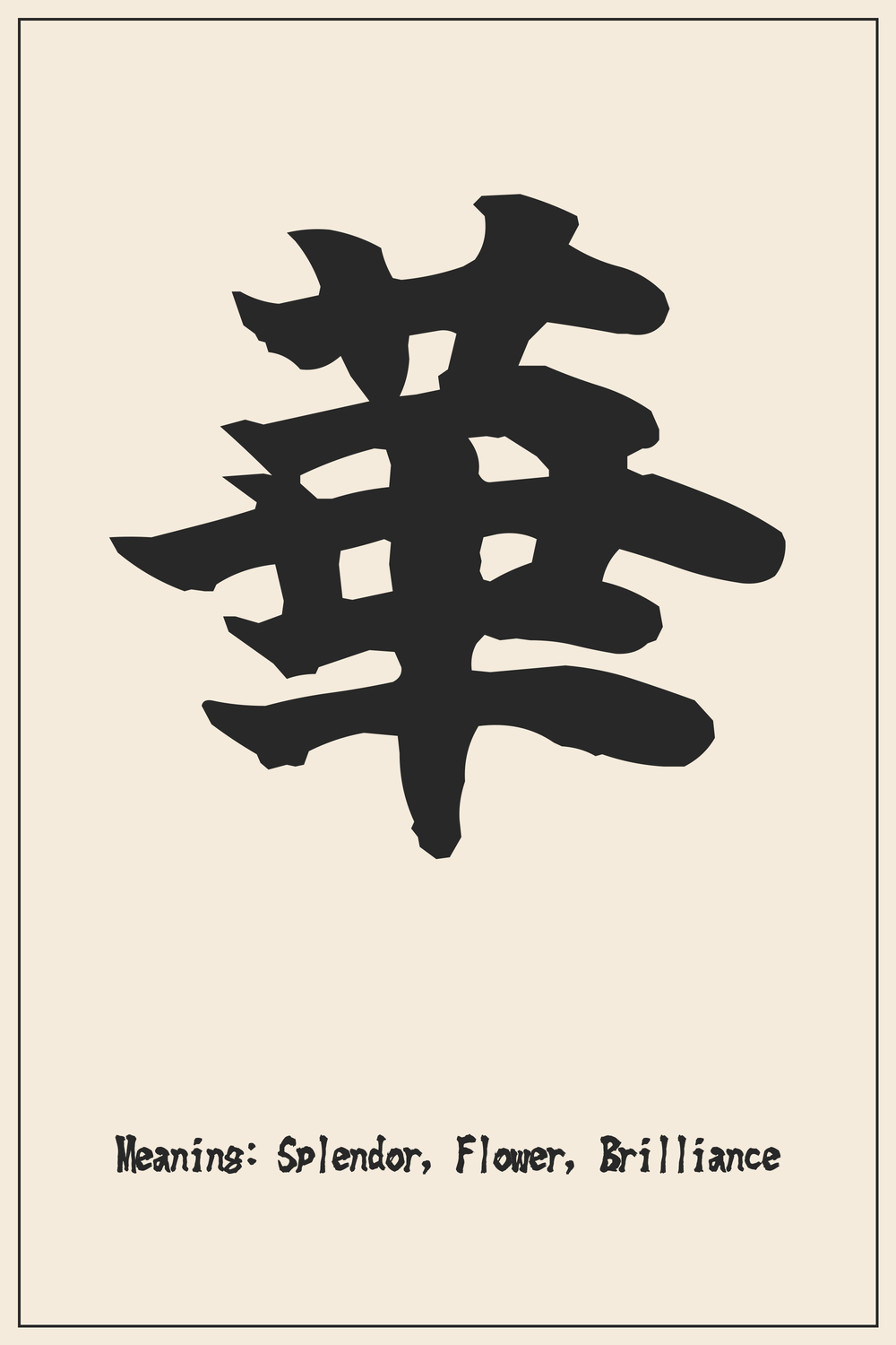 The Kanji ‘่ฏ’ is a complex character whose structure beautifully conveys its meaning of a flourishing flower or splendor.