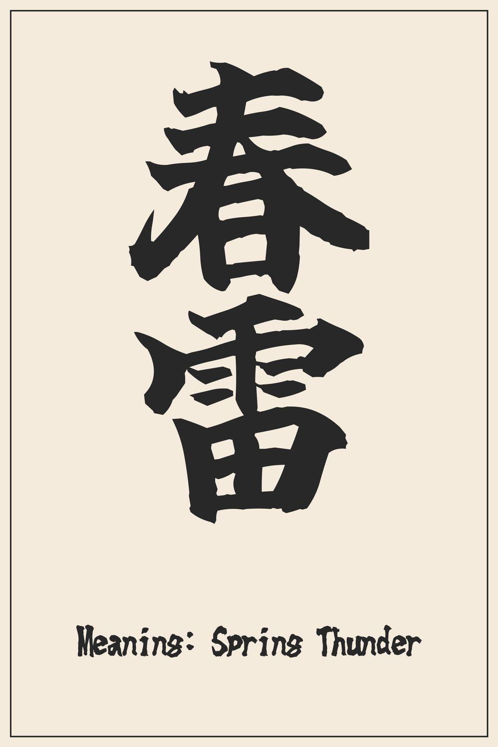 春雷 embodies the powerful awakening of nature in spring, symbolizing renewal and energy. Just as thunder heralds the arrival of life, this kanji inspires courage and a zest for new beginnings, making it a perfect representation of personal growth and vitality.