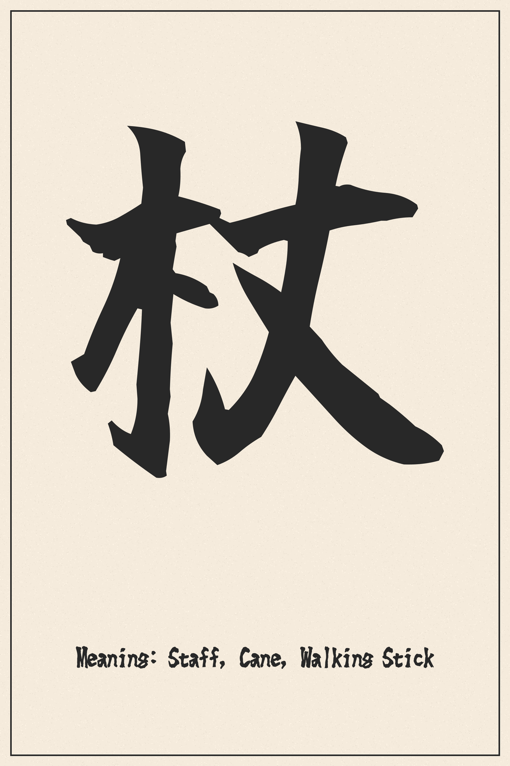 Tree / Wood: This radical clearly indicates the material from which a staff is typically made, anchoring the Kanji in the physical world.