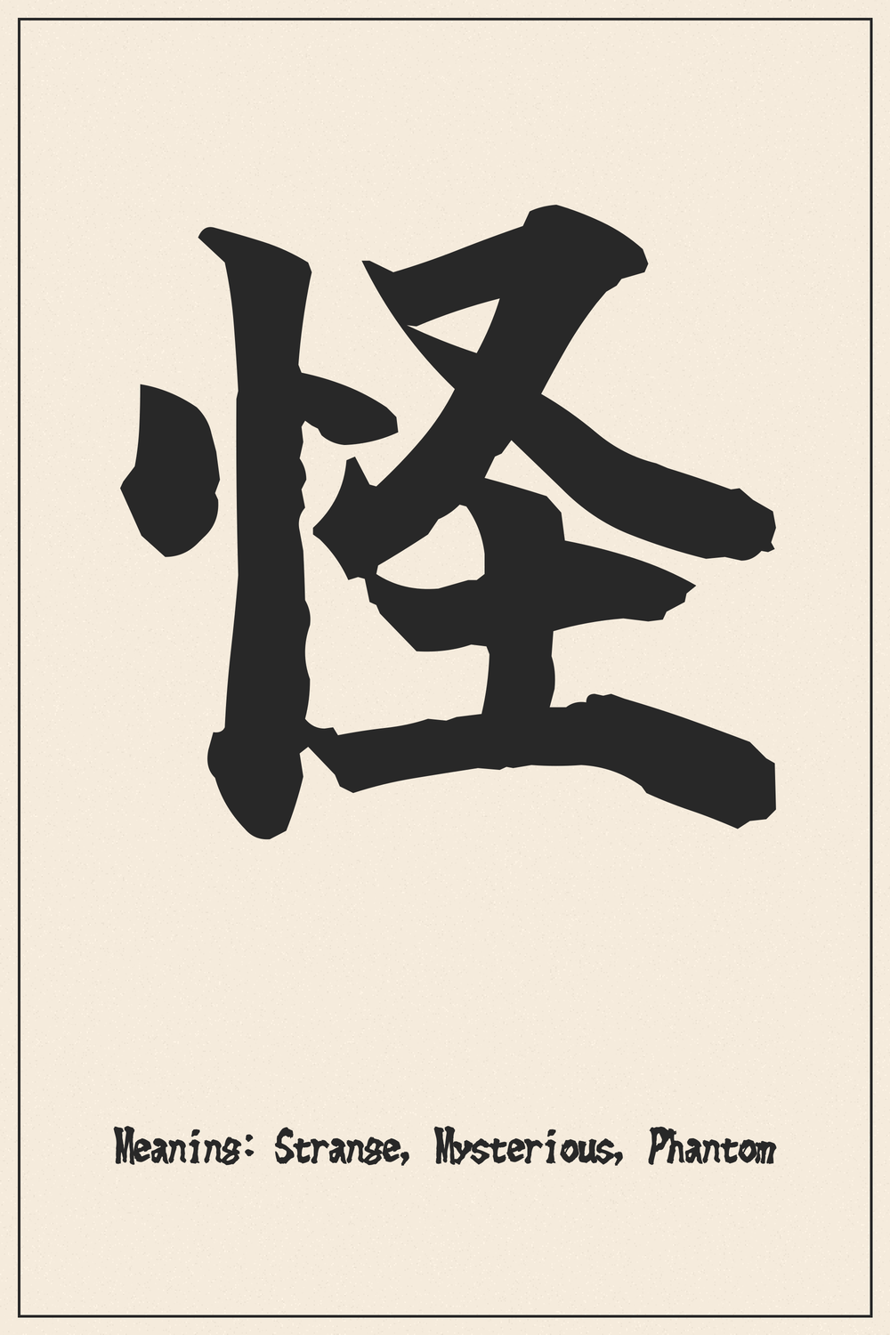 The Kanji 怪 (Kai) beckons to the enigmatic, embodying the essence of what is strange, mysterious, and beyond the ordinary. It captures the human fascination with the unknown and the supernatural.