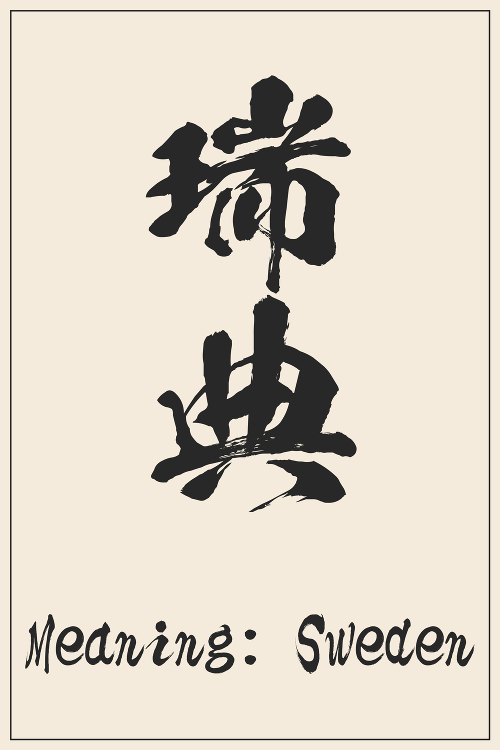 瑞典 (Suēden) represents Sweden, a nation known for its innovative design, social welfare, and stunning natural landscapes. This Kanji pairing uniquely captures the sound of the country’s name through a fascinating phonetic transliteration.