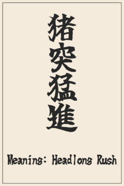 猪突猛進 (Headlong Rush) – Japanese Kanji Design