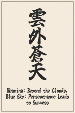 雲外蒼天 (Beyond the Clouds, Blue Sky; Perseverance Leads to Success) – Japanese Kanji Design