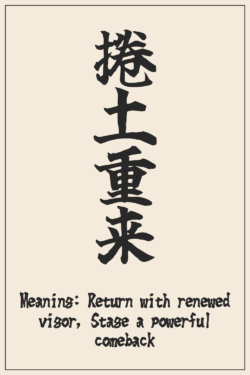 捲土重来 (Return with renewed vigor, Stage a powerful comeback) – Japanese Kanji Design
