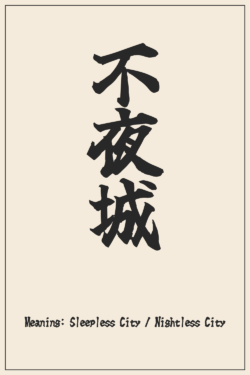 Mind, Spirit & Dreams 不夜城 (Sleepless City / Nightless City) – Japanese Kanji Design 2024.02.28 Mind, Spirit & Dreams