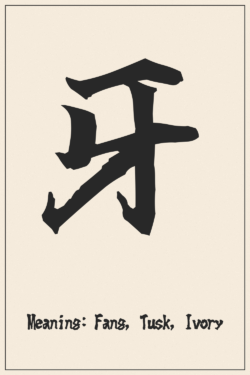 牙 (Fang, Tusk, Ivory) – Japanese Kanji Design