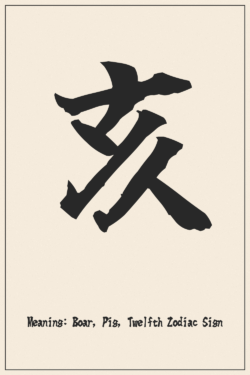 亥 (Boar, Pig, Twelfth Zodiac Sign) – Japanese Kanji Design