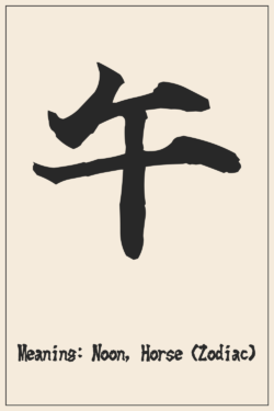 午 (Noon, Horse (Zodiac)) – Japanese Kanji Design