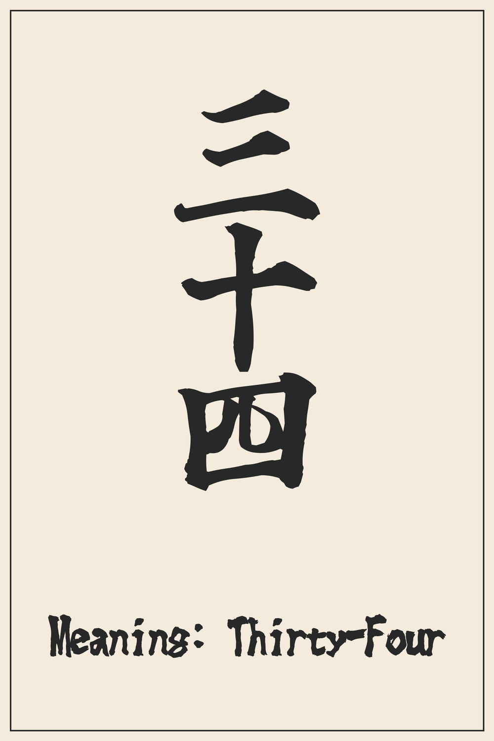 The number ‘三十四’ is a compound of three fundamental Kanji, each with a clear meaning: