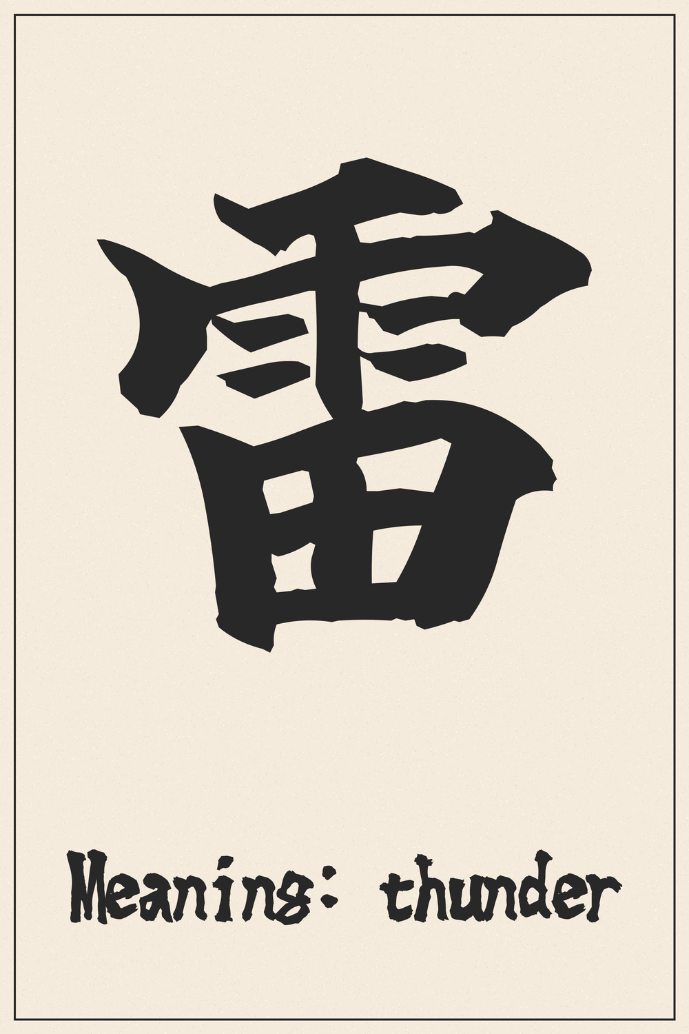 This kanji embodies the raw power and beauty of nature, representing strength and energy. Just like thunder that roars through the sky, it symbolizes a force that inspires awe and respect, reminding us of the dynamic forces in life that drive change and growth.