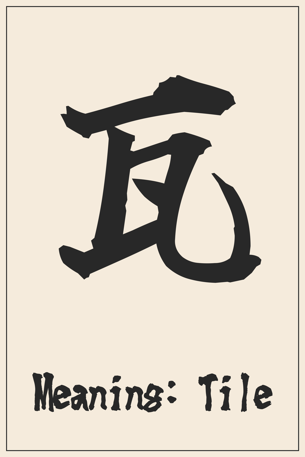 The Kanji 瓦 (Kawara) embodies the quiet strength and enduring beauty of traditional Japanese architecture. It represents not just a material object, but a cultural cornerstone that protects and defines the landscape.