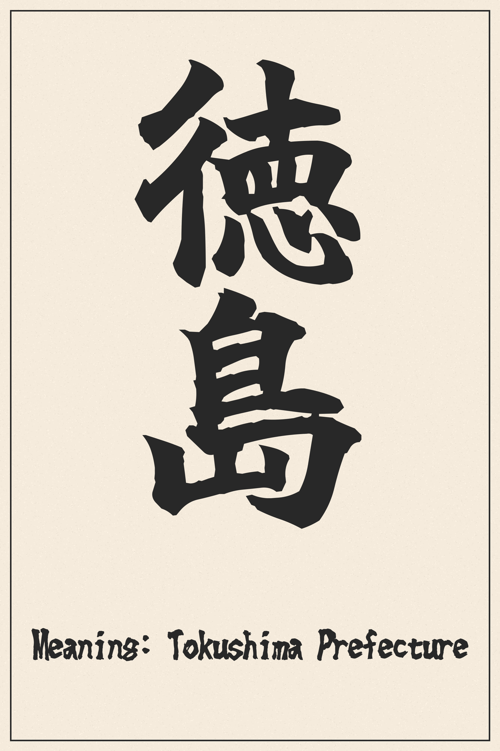 The kanji compound 徳島 (Tokushima) functions primarily as a proper noun, designating a prefecture on Japan’s Shikoku island. While its meaning is geographical, the individual characters contribute to its historical and cultural resonance, rather than conveying a singular abstract concept.