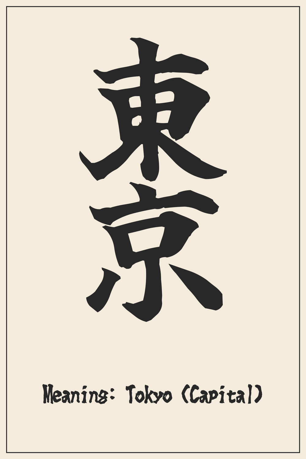 The Kanji “東京” beautifully merges the directional “East” with the essence of a “Capital,” perfectly naming Japan’s bustling capital city. It represents a focal point of innovation, history, and cultural richness, symbolizing a blend of ancient traditions and cutting-edge modernity.