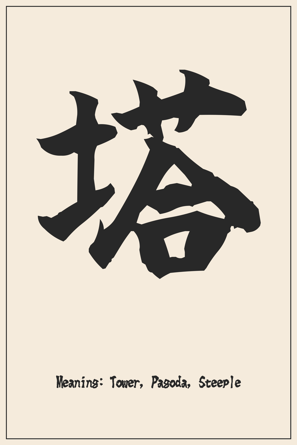 The Kanji 塔 embodies the stately presence of structures that pierce the sky. It represents not just a physical building, but a timeless symbol of aspiration and elevation.