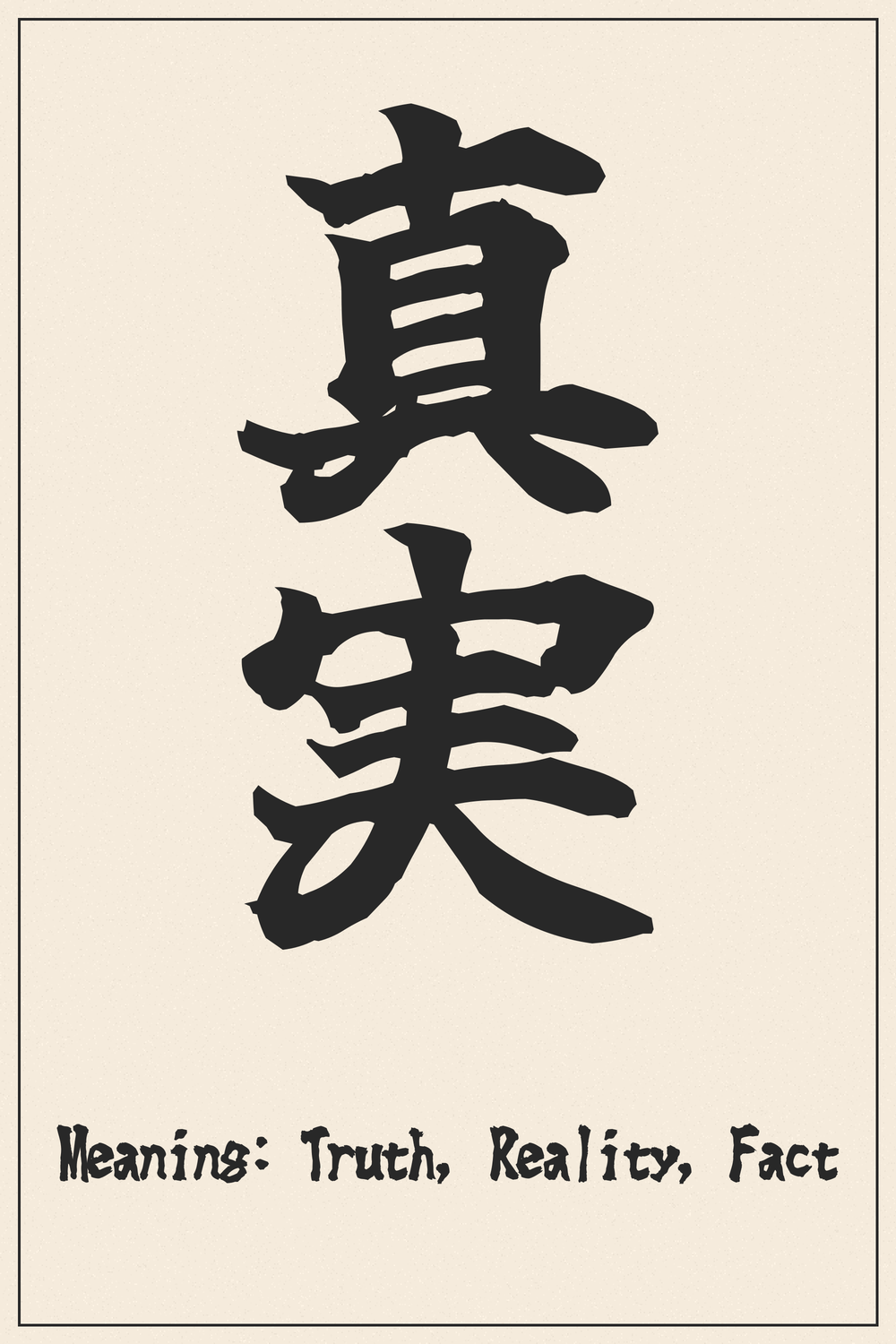The compound 真実 (Shinjitsu) is formed by two powerful characters, each contributing to its overarching meaning of truth and reality.