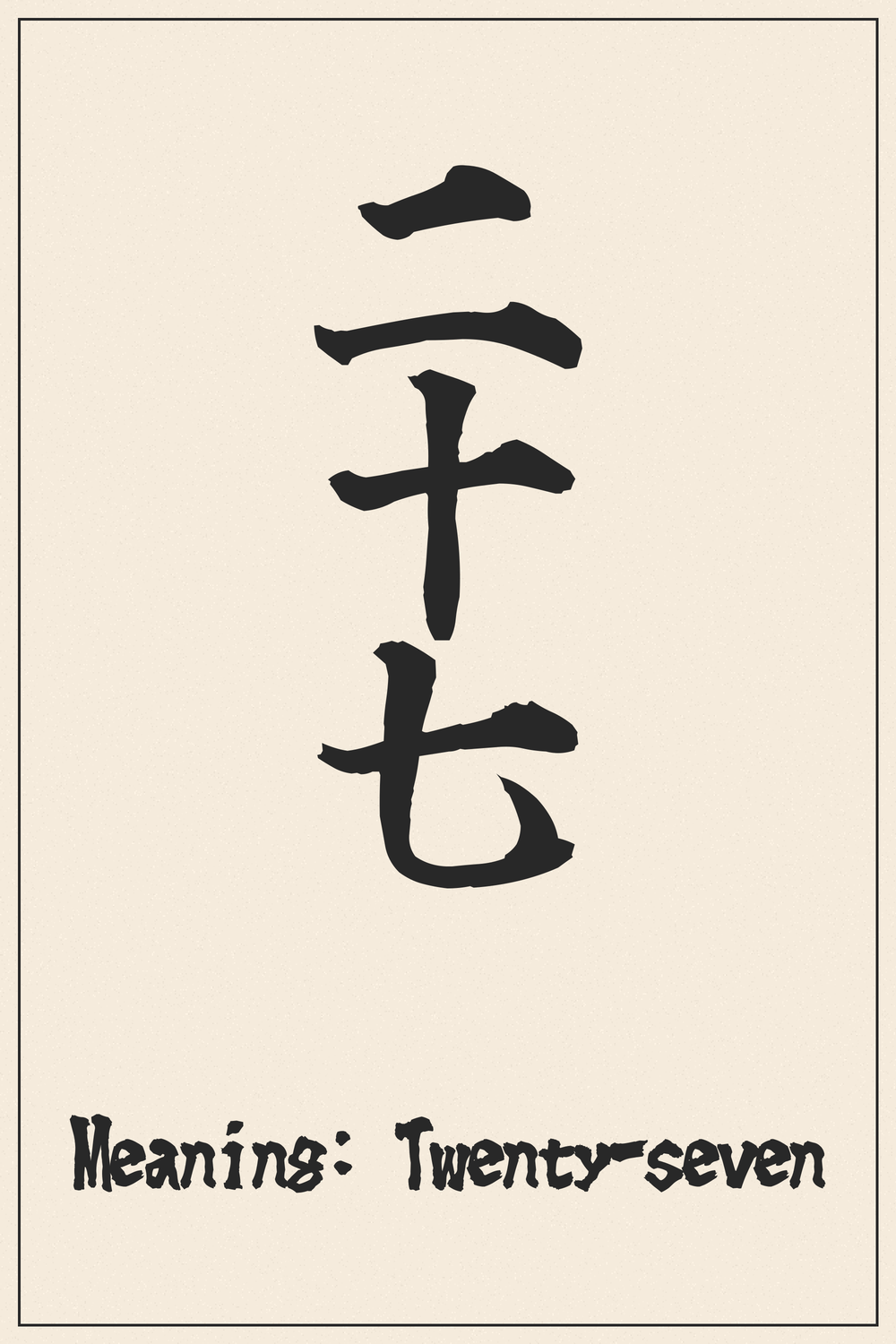 The Kanji “二十七” precisely denotes the number twenty-seven. Its strength lies in its clarity and directness, making it a powerful choice for those who wish to mark a specific quantity, an age, or a date of deep personal importance.