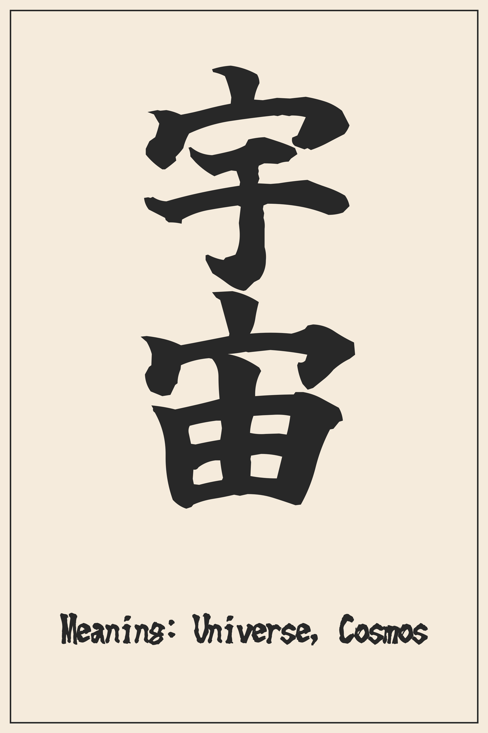 The Kanji 宇宙 (Uchū) encapsulates the entirety of existence, from the boundless reaches of space to the profound depths of time. It symbolizes the ultimate canvas upon which all life and destiny unfold.