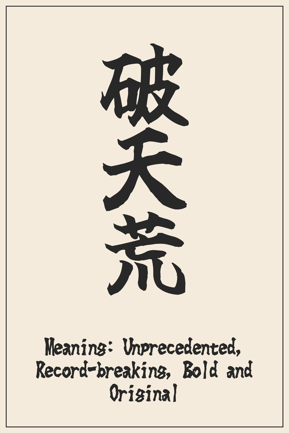 Each character in 破天荒 contributes to its profound meaning, depicting the act of breaking new ground and achieving the impossible.