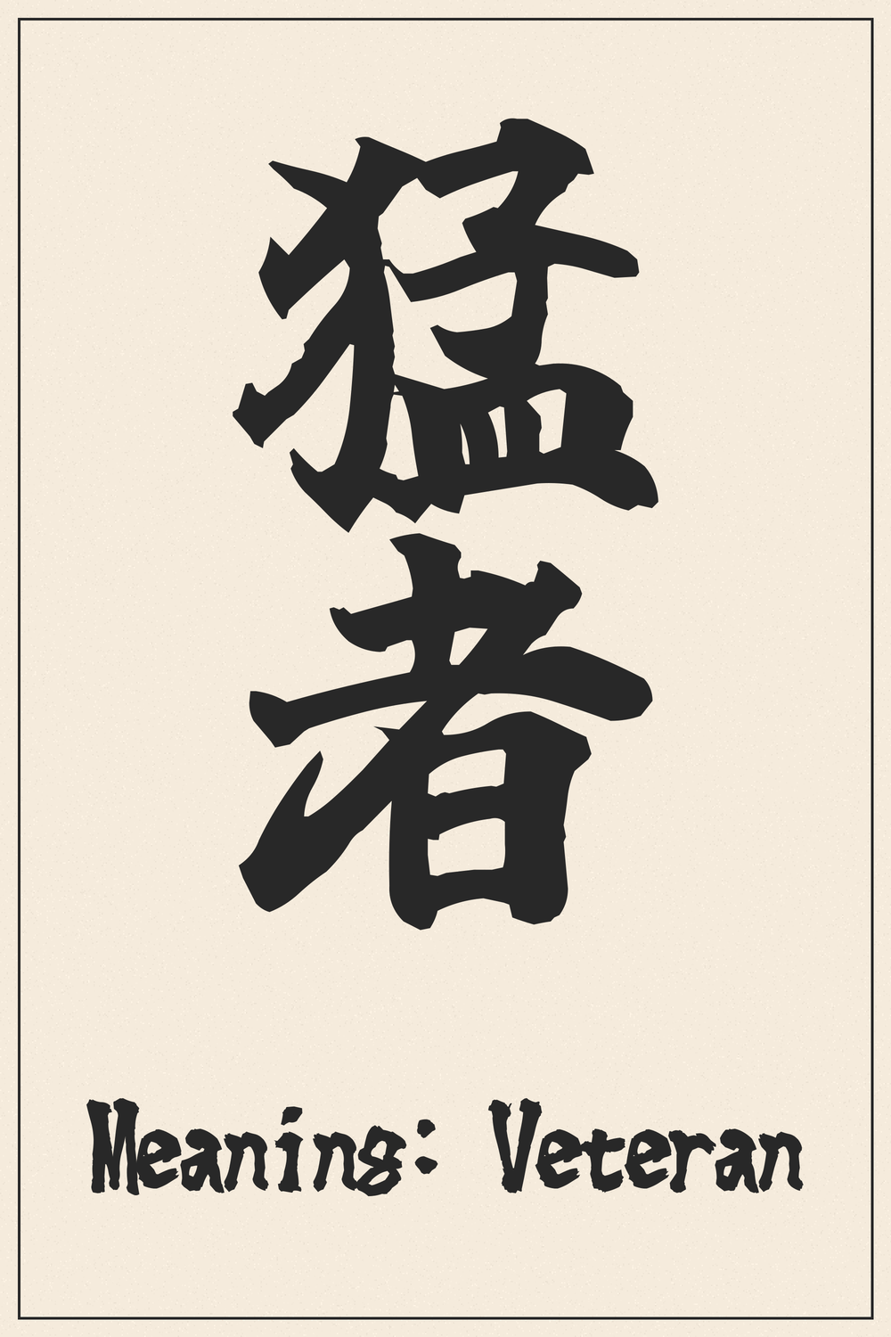 Embodying the essence of experience and strength, 猛者 represents a seasoned warrior, someone who has faced challenges with courage and resilience. This kanji is not just a mark of the past but a celebration of wisdom earned through battles fought and victories claimed.