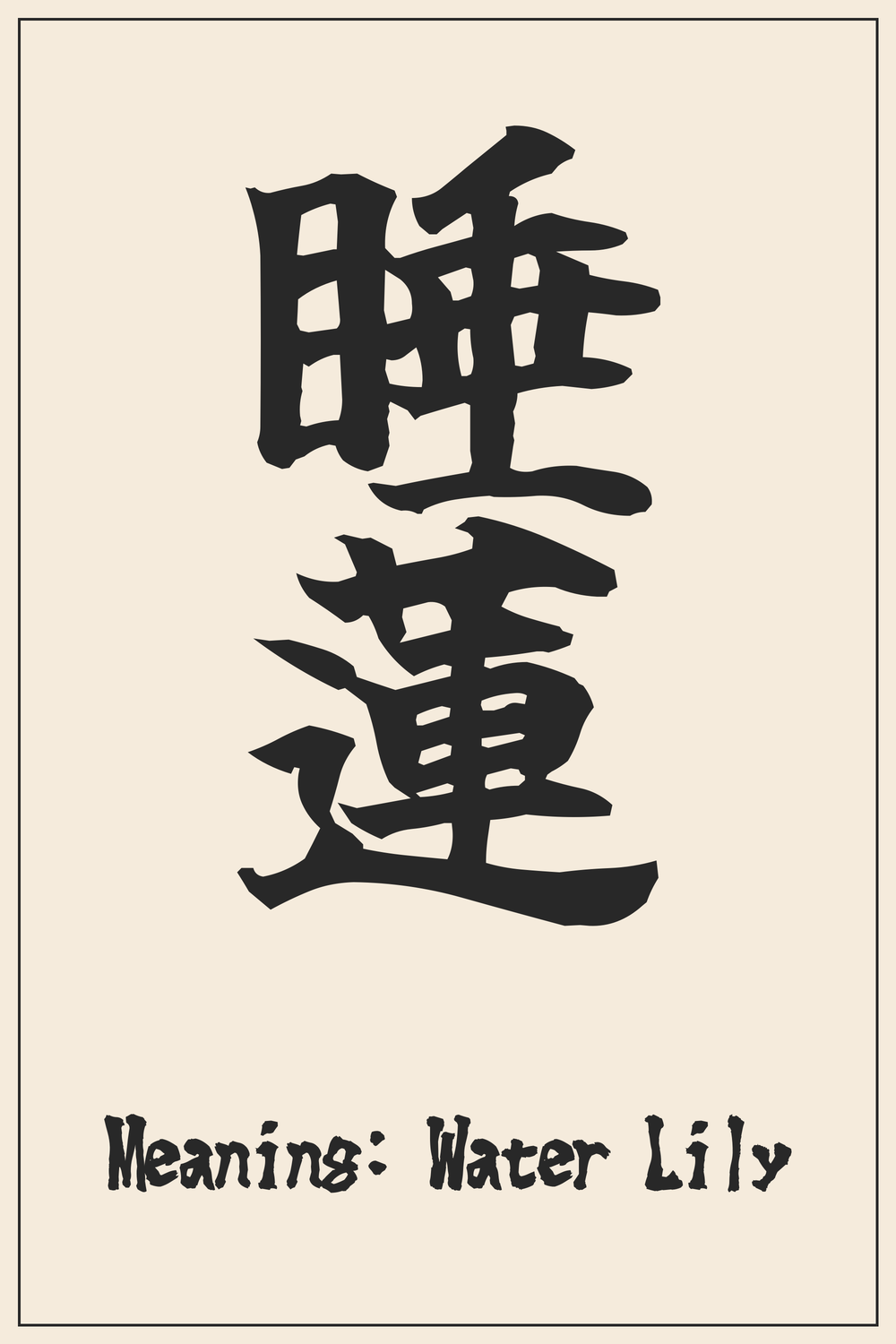 The Kanji 睡蓮 (Suiren) beautifully encapsulates the tranquil elegance of the water lily. This symbol offers a profound connection to nature’s delicate balance and spiritual awakening.