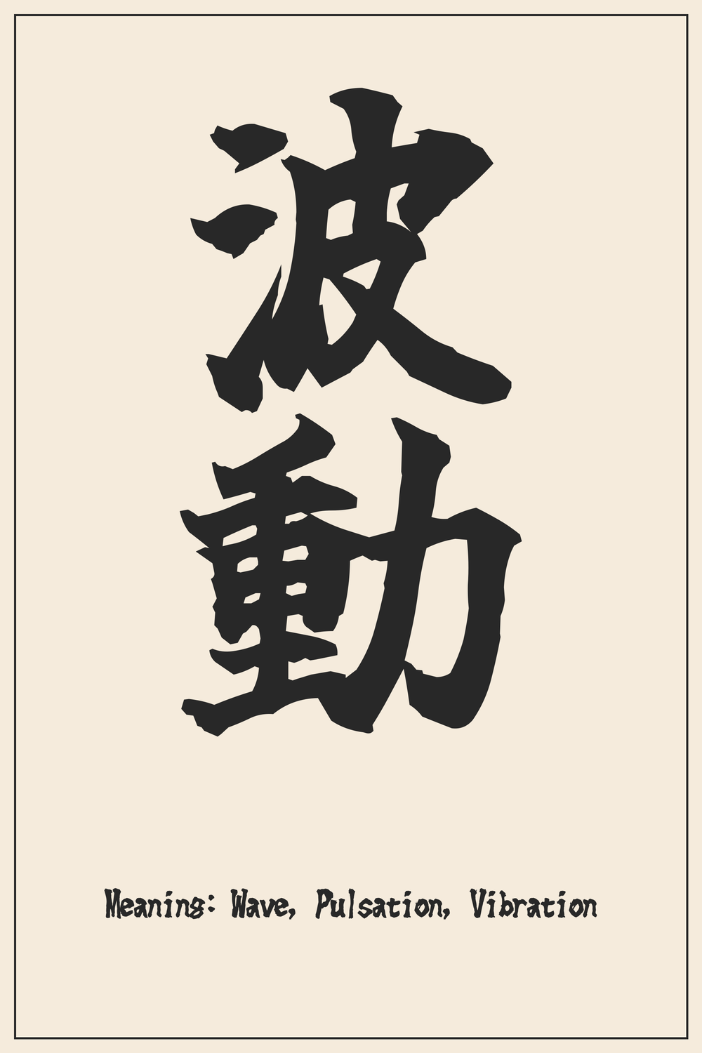 “波動” (Hadou) embodies the powerful and subtle forces that shape our world. This profound kanji combination captures the essence of movement, energy, and interconnectedness.